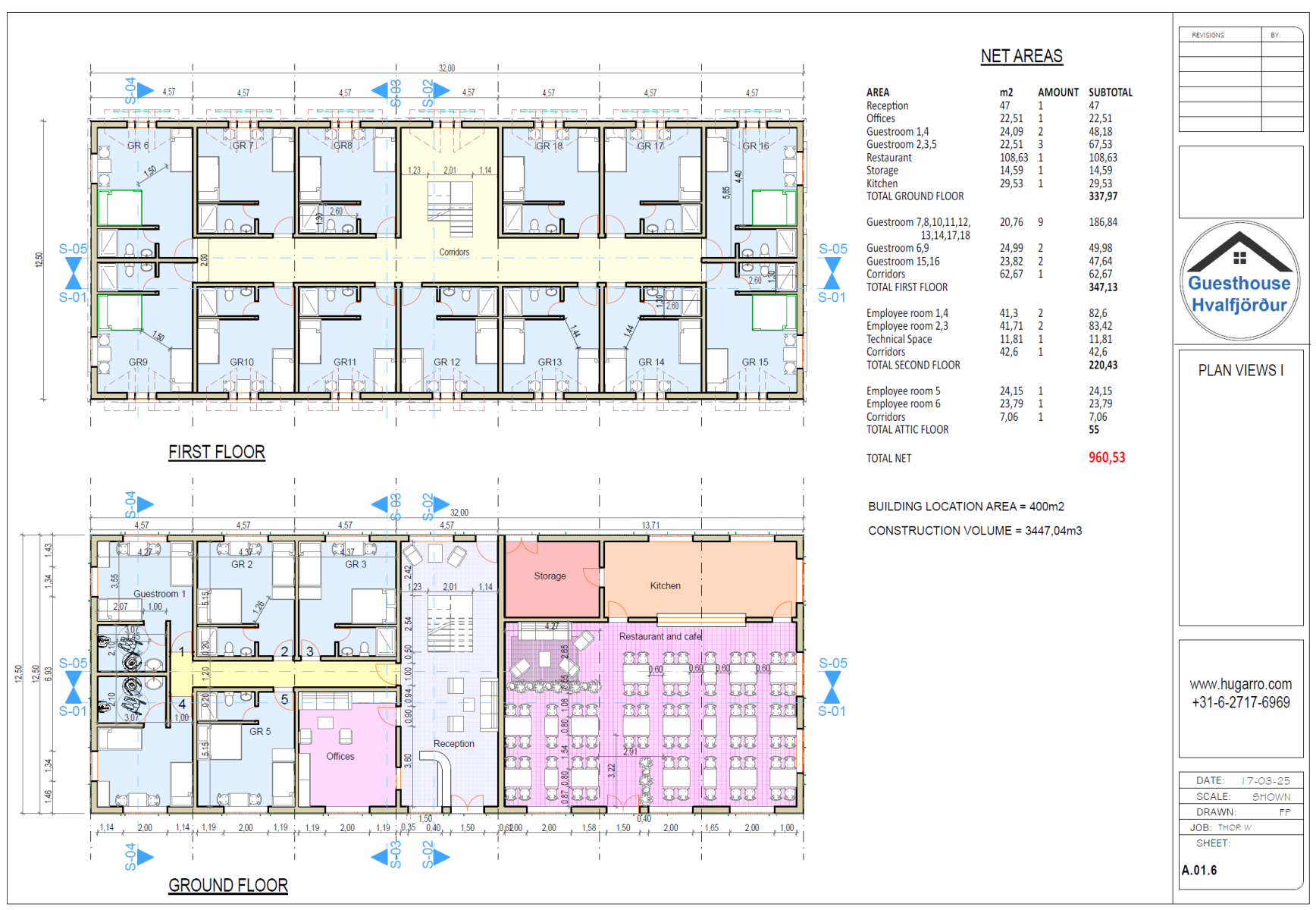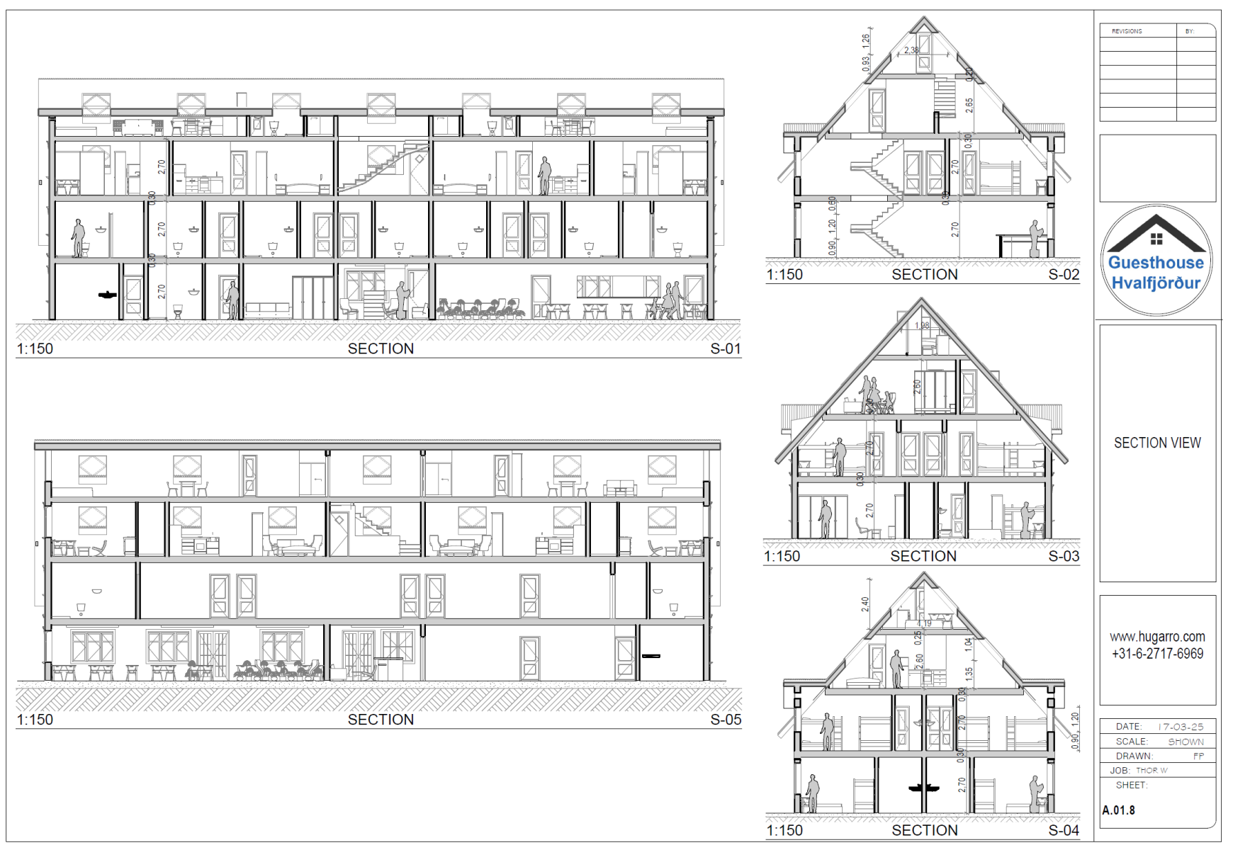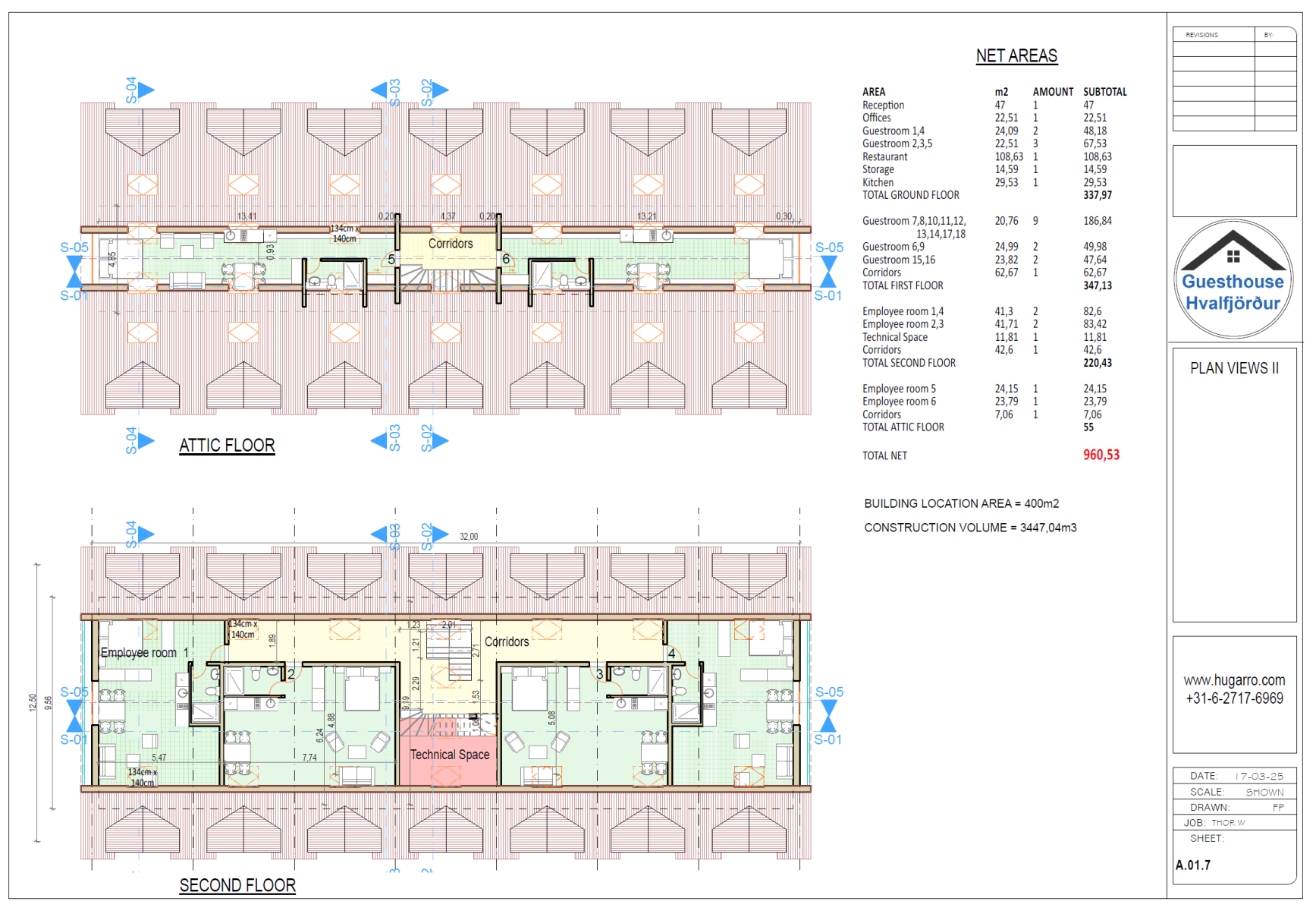 Another option might be a guesthouse that is shared by staff and guests. See drawings below: