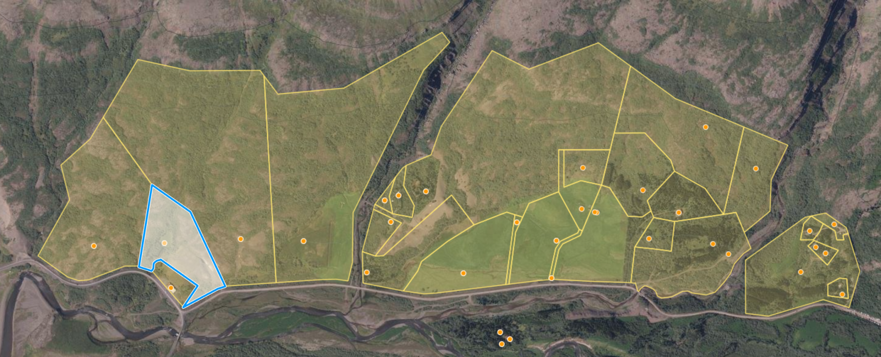 Below is an extensive photo gallery of the site, with the location of Petur’s land relative to Hugarró indicated in the last two images.
