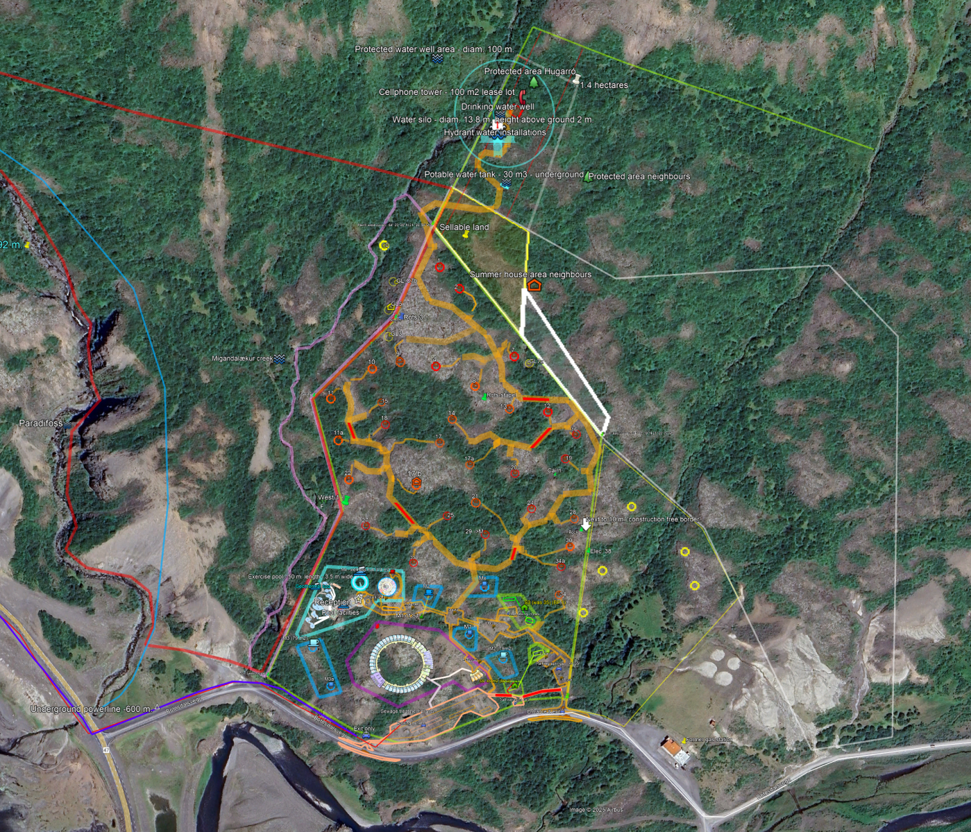 The thing is: down the line it would provide space for 5 more cabins (left of small creek that is surrounded by trees). And 5 more cabins mean abouts Euro 800k in extra revenue each year. I’d say the land investment pays itself back in 3 years without taking into account the increase in land value.